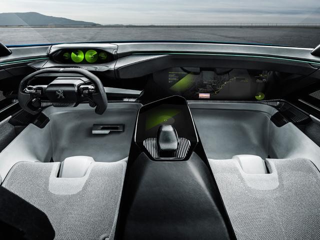 The Peugeot i-Cockpit® interior architecture with a highly tactile, adaptable cabin switches from being a focused driving environment to a comfortable lounge space. Photo: © Peugeot