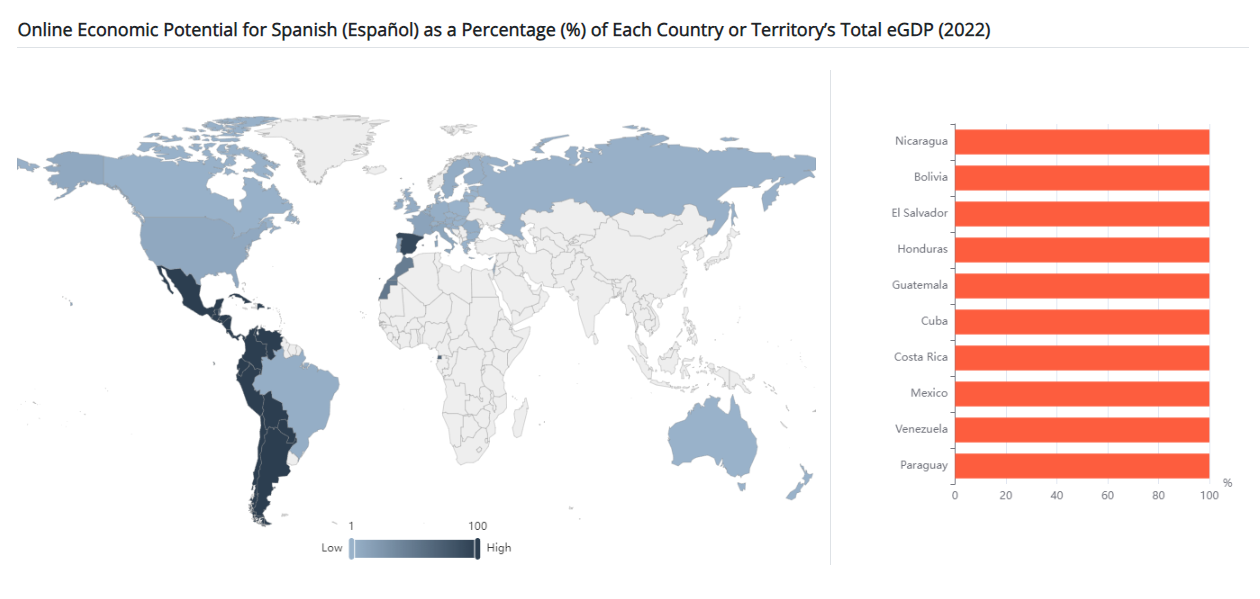 Discover the value of languages. When you speak your customers’ languages, you increase their loyalty and their purchase likelihood. Use the Economic Atlas of Language to understand the economic opportunity offered by different languages in countries around the world and discover the reach your language strategy can give you.