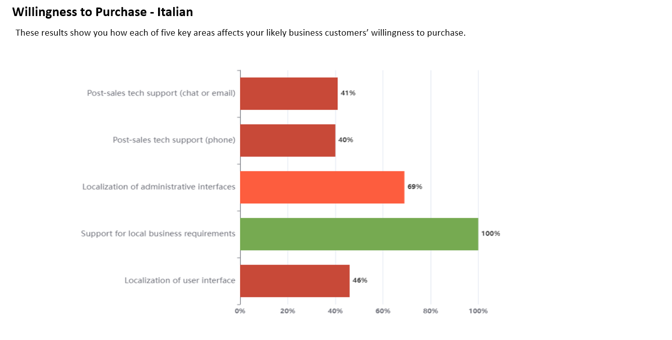 Benchmark your localization against the purchasing preferences of over 1000 business buyers in 28 markets to empower your business to optimize global customer engagement, identify gaps in global customer experience, and drive strategic growth based on meticulously validated research.