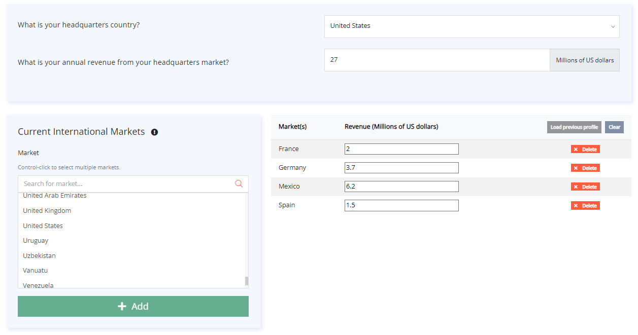 The Global Revenue Forecaster™ makes predictions based on your existing market performance. However, language is just one necessary condition for success in international markets. Your actual success will depend on a variety of factors, such as the appeal of your products or services for particular markets, the effectiveness of your sales and marketing efforts, local and international competition, brand reputation, and legal, regulatory or logistical requirements. The Global Revenue Forecaster™ can help you set realistic targets, but it is up to your organization to do what it takes to achieve its goals. To learn more about what it takes to ensure global organizational success, take the Globalization Maturity Assessment™ today.